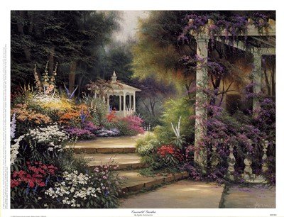 Title: Emerald Garden. Artist: Egidio Antonaccio. Image Size: 15.86in. x 11.86in. Paper Size: 17.00in. x 13.00in. HIGH QUALITY CANVAS Print With Light Added BRUSHSTROKESThis is an unstretched canvas print which will be rolled and securely shipped in a sturdy tube. This beautiful canvas print also has added artist brushstrokes painted onto the print as well. All canvas prints should be cared for to avoid exposure to dust, grime or finger grease in handling.